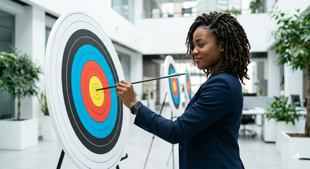 Success is not built on random activity. Just as this professional has locked onto the exact bullseye with confident focus, meaning is restored when every effort hits its defined target. Clear goals create true achievement.